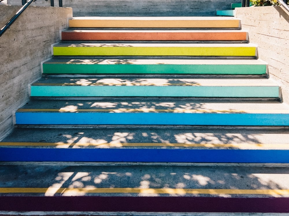 Take your chocolate sample and walk through Ghirardelli Square plaza to Beach Street. Here you can find a newish staircase that’s painted with rainbow colors!