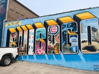 This is possibly the most iconic Chicago mural you can visit when in the city. The size and scale of this work is possibly one of the biggest you’ll encounter so you’ll have to take the photo from a distance. Fun fact: New York City artists, Victor Ving and Lisa Beggs, have made at least 30 “Greetings From” murals in the country but Chicago was their first official one.