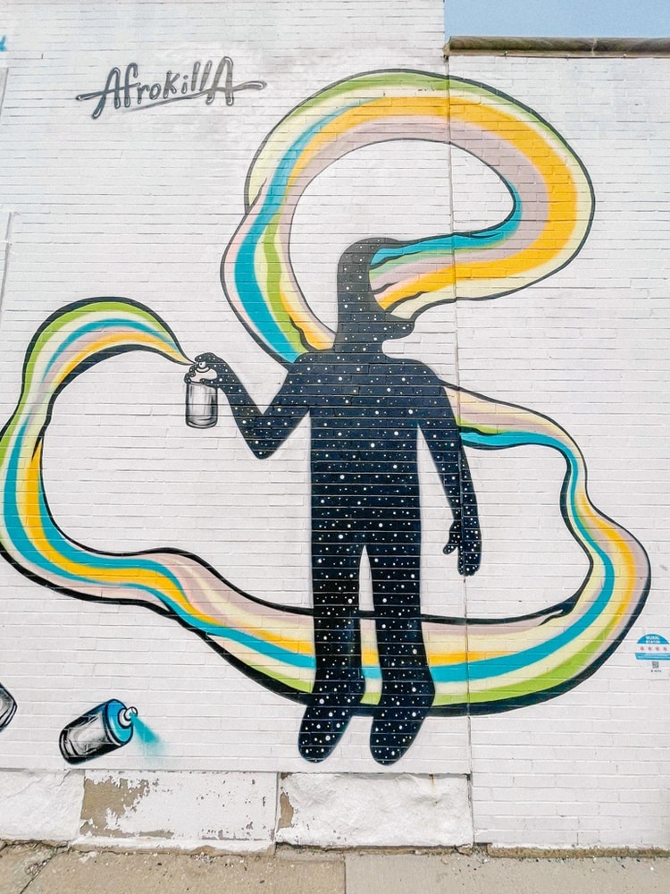 A tip I have for anyone going to this mural is to be prepared for a car to be blocking part of the mural. It’s located on the side of a wall directly facing a parking lot so while you have plans to go take a picture to show your friends and family you’re in Chicago, others have plans to go to work. Be prepared to work around any hiccups such as these—it’s possible!