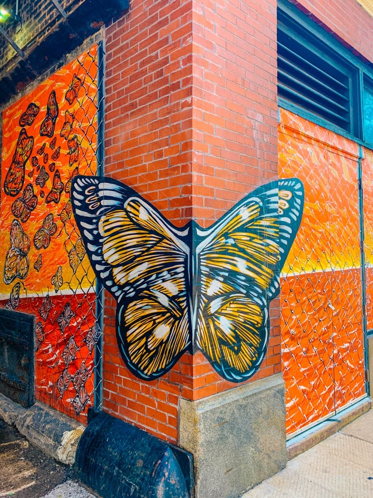 The second chance of getting a photo op with this mural is standing on the corner in front of the bigger butterfly to make it look as if you have wings. It’s within walking distance of the Museum Campus so after taking in some of this public art, you can go to the Shedd Aquarium or Field Museum.