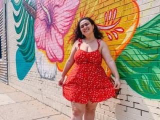 - Wear white, or a complementary color: An all-white outfit will always look nice in front of any mural, no matter the pattern or colors. You’ll pop out again the art nicely. Or, you can plan an outfit of a complementary color (ie if the mural is mostly blue tones, wear something orange to pop out in front of it.)I love wearing dresses since you can twirl to add some fun motion to the otherwise static background.
