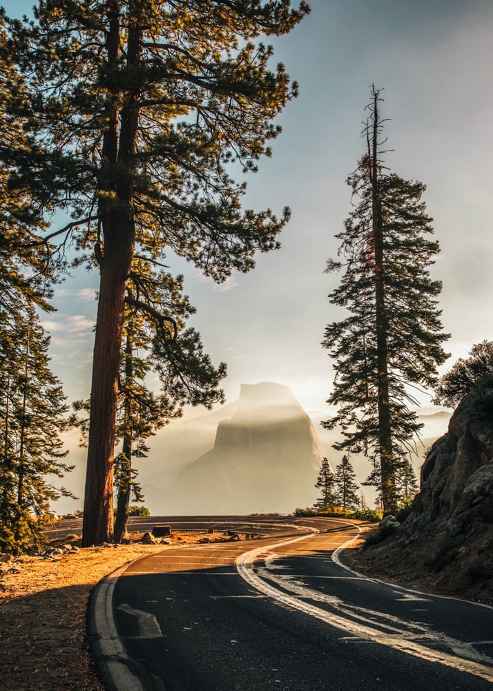 Tunnel View is that famous lookout point overlooking the entire valley head-on with El Captian and Half Dome in the distance. No need to hike in, you access the parking lot right off the Scenic Route Highway 140. I recommend stopping by in the afternoon or for sunset when the sun will be more at your back, flooding the valley with light.