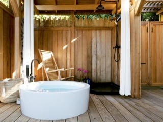 It's off the grin on 3 acres of land, yet a close drive to the beach and Santa Barbara eats. Click over to look at that outdoor bathroom, it's awesome, or find more glamping spots in California if this one is booked.