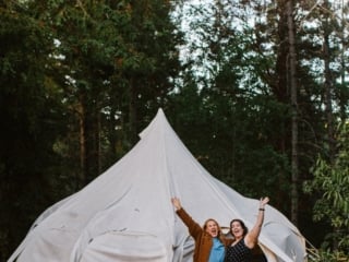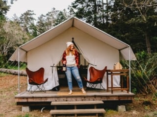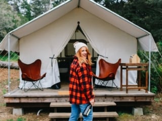 A large size glamping tent with a bed, electricity, heated blanketed, fire pits for marshmallows at night and other super chic touches. Robin and I stayed here on a Mendocino getaway a few years ago and fell in love with this glamping tent park. It's right outside of town so it's the perfect blend of nature (that's not too far of a drive!)