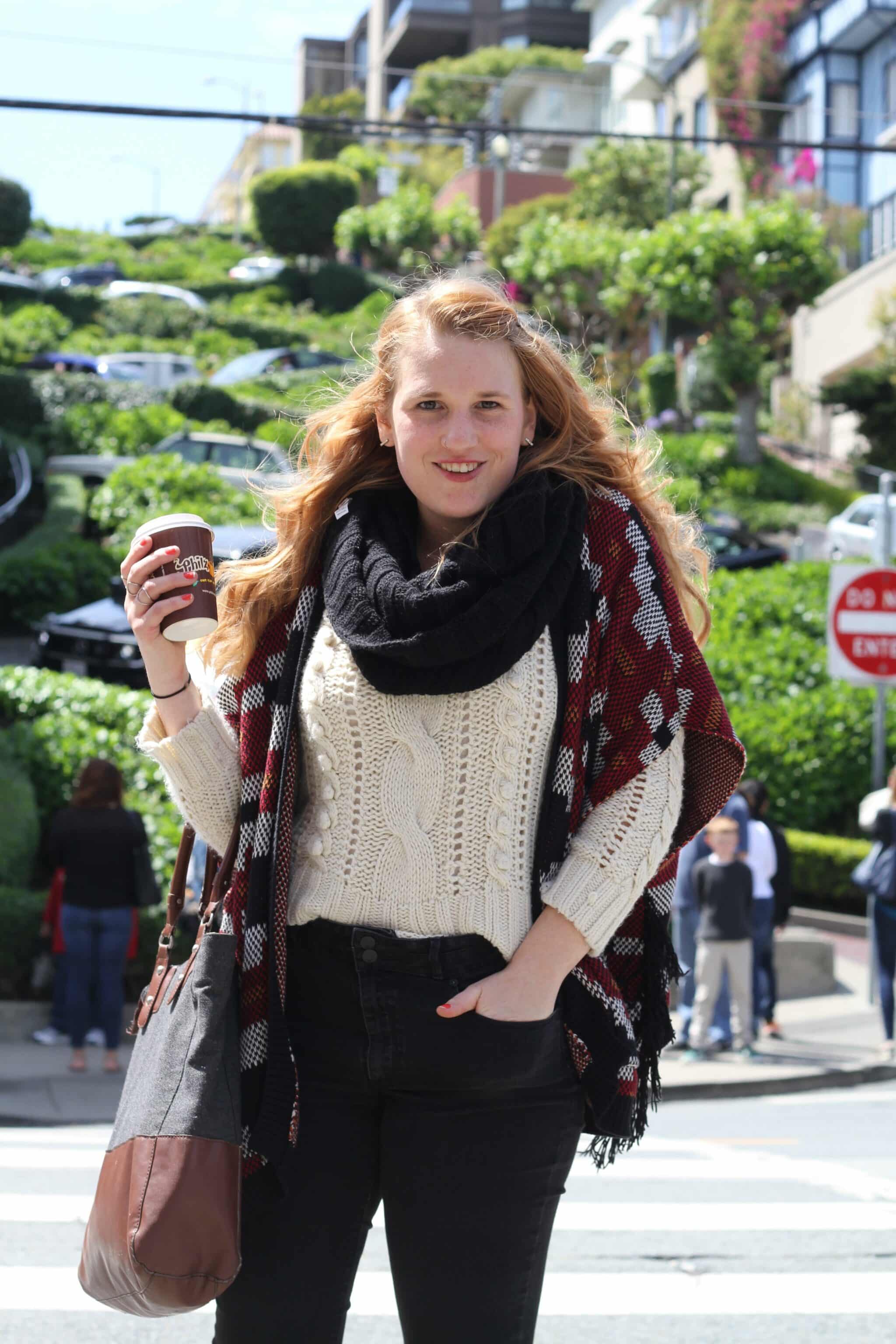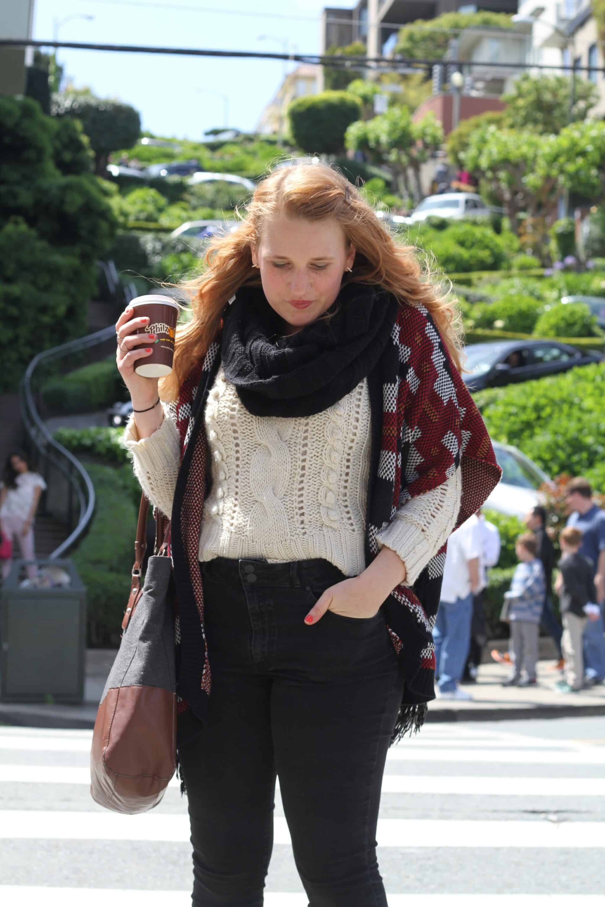 So, since we live in the Sunset District, where despite the name you can sometimes not see the sun for days since it’s always so foggy, it was chilly when we left for our adventure. But I had a feeling San Francisco would change it’s mine, so I wore a sweater and my aztec cardigan both from Forever21 along with an infinity scarf and jeans from Target.This outfit gave me layer options which came in handy since the afternoon got rather warm and the fogged cleared. That’s San Francisco for you!