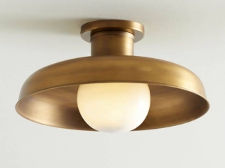 Inspired by midcentury Danish dome lighting, this Pottery Barn option is a perfect choice for Scandi design lovers who want to revamp an ugly boob light. The inner milk glass shade is hand blown and nestled inside a brass flush mount light fixture (it comes in two finishes!) that drops a few inches below its mount.