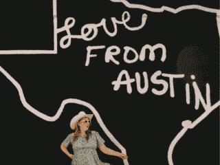 At the airport, head to the end of the baggage carousel area and look for the giant guitar outside. The bus picks up near here. You need cash or can download the CapMetro app to pay for your ticket. (Do the later ahead of time since the cell service at the airport isn’t great.) It’ll take about 40 minutes to get to downtown! I do this every time I visit Austin.