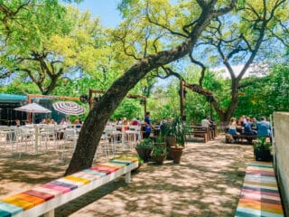 Cosmic Coffee is another cool option in South Austin and a place I loved so much we went twice during our visit. It’s a large Biergarten / coffee shop with a few food trucks inside the grounds, including LeRoy & Lewis, an award-winning BBQ food truck! It has a lot of trees and even a chicken coupe in the garden area. The whole vibe is super welcoming and a fun place to sip beer and eat BBQ under the sky.