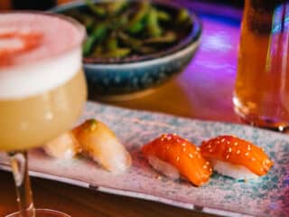 Lucky Robot is a sushi place that’s decorated in the coolest hanging cherry blossoms on the inside. It’s like walking into a flower field, and the sushi is *chef kiss*. They’re the only restaurant in Austin that serves up Prime Dry-Aged fish so make sure to try some of that!