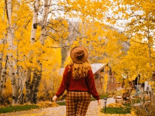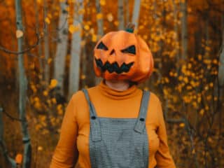 Create a flower crown using fall blooms like dahlias, sunflowers, and mums, and wear it for a whimsical photoshoot in the woods. If you’re not feeling crafty, consider buying a beautiful gold leaf crown to add to your Halloween props collection. I’m thinking, Greek goddess?