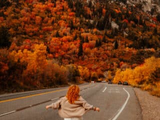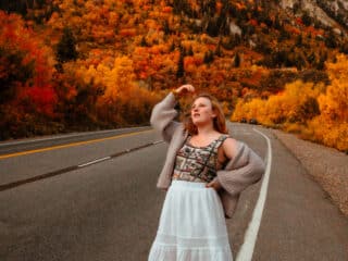 Embrace different poses like turning sideways, back to camera or looking out/up. It sounds silly, but it’s a great way to focus on the beauty of the autumn scenery. By turning away from the camera and gazing up at the colorful foliage or expansive sky, you create a sense of wonder and serenity.