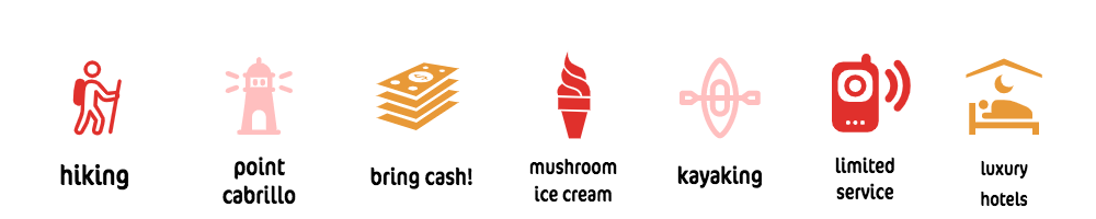 We seem to find ourselves in Mendocino twice a year. The rugged Northern California coastline can only be described as majestic and keep pulling me back. The old logging style buildings in town are cute and I get giddy over all the unique wooden water towers in backyards of homes. Mushroom candy cap ice cream is something I never knew I loved but now I get a cone every time we visit.