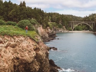Just a quick drive outside of Mendocino is Russian Gulch State Park. I recommend you do that 1-hour exploration around Devil’s Sinkhole and the beach, which takes you under the Hwy 1 bridge. The sinkhole is super wild to gaze down into and always something I swing by whenever I’m visiting Mendocino.