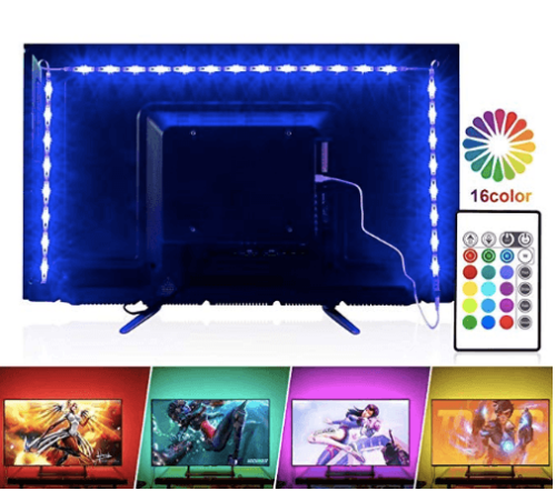 I love Christmas time for so many reasons, but one of my favorite things is snuggling up on the couch with all the apartment lights off but the tree. The tree glows and makes the whole apartment feel cozy. I’ve tried to replicate that feeling at other times of the year but haven’t quite got it right… but then I found these lights on Amazon. You stick this cord to the back of your TV and you can change their color with an app on your phone. The light makes the wall glow and mimics that holiday lights look!