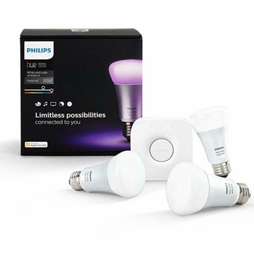 Hue was my first smart device that we installed over 4 years ago. (Still using the same bulbs, by the way! They last forever.) Hue makes smart light bulbs and we currently have them in our kitchen, though I’m always tempted to replace every bulb in our apartment with a smart one. You can control the color and brightness with an app on your phone or with your Amazon Alexa Echo.