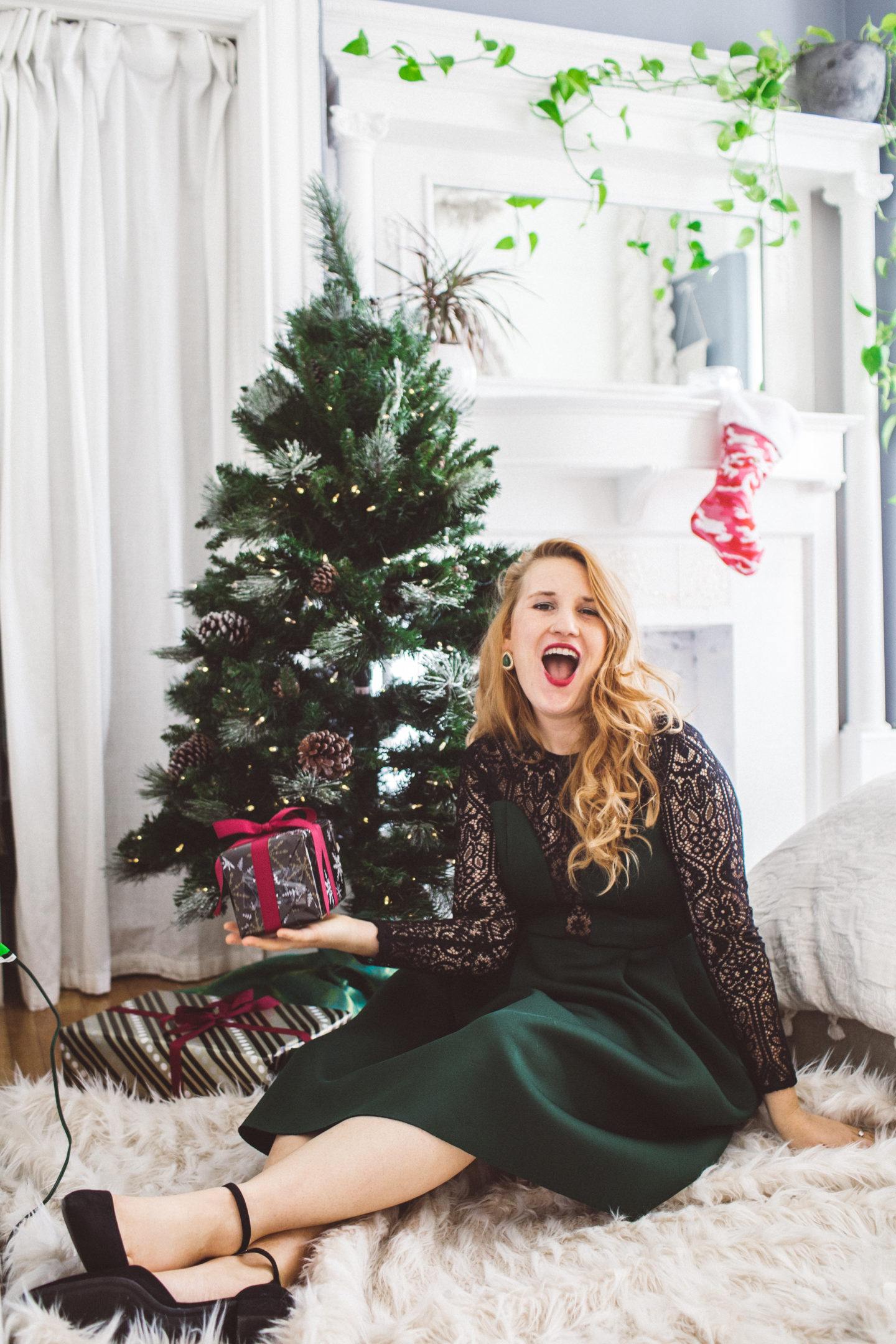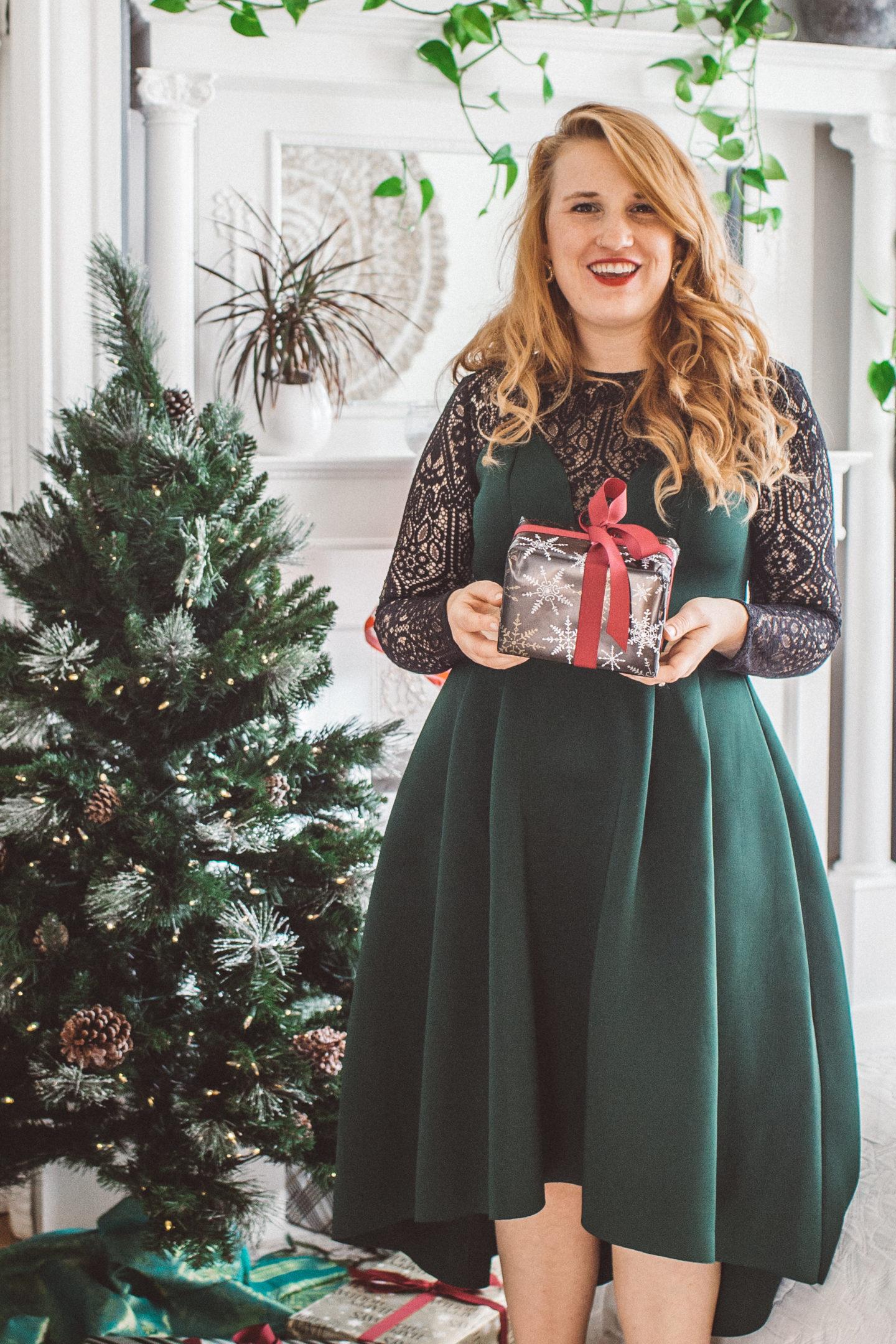 I saw this green dress on ASOS and knew it was that perfect classic dress for Christmas parties! Ok, I lied to you a bit – this dress is $103, but let’s pretend that extra $3 isn’t there so it can be added to this list? Ok? Ok! The fit and flare style flatters curvy women like myself. The dress makes a statement, so wear simple shoes & jewelry. Hair half up with a bow, or in a bun for an elegant holiday party outfit!