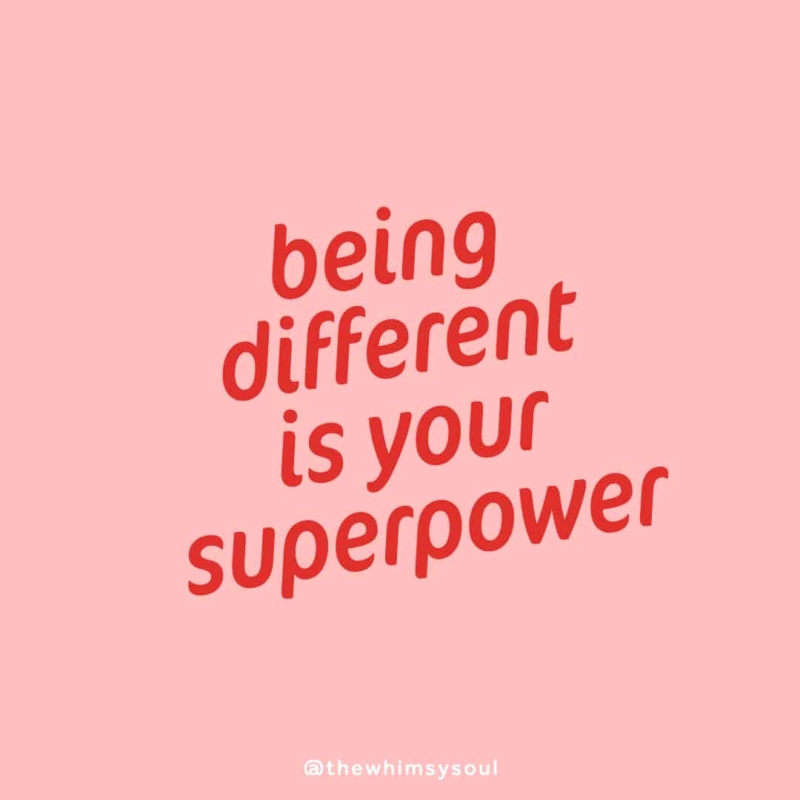 We’re all so different and that’s what makes us each so special. Stop trying to be like everyone else. Be in love with your body, be in love with your mind, be in love with what makes you different. That’s your superpower.