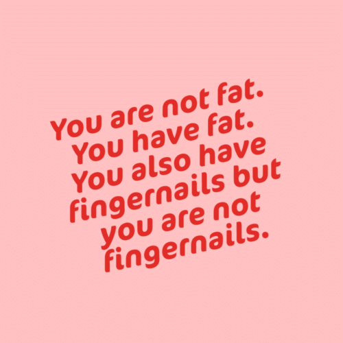 Holy moly, this is my favorite quote about the human body I’ve read in a long time. It was a super important one for me to help me overcome my internalized fatphobia. It lays out how ridiculous it is that culture has made “fat” a negative word to describe someone. Fat is normal, all bodies have fat. Mainstream media likes to tell women that we should fear fat, but we all have fat and we all need fat. Heck, some of us even identify as fat. It’s not something to fear!