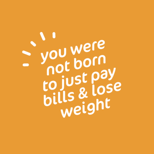 Losing weight is not your life mission. Counting calories is not your one true calling. You are meant for something greater.