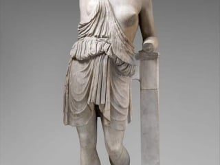 Oftentimes people who write about Ancient Greek body standards refer to the ideal body type as “plump.” As shown in this marble statue of an Amazon, this is a fairly fit woman, indicated by the toned muscles in the arms, with curly/wavy hair but the actual body doesn’t look plump by any means.