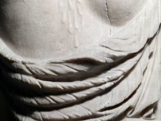 Though Venus of Willendorf has no face, it does have what looks to be hair in a crown of braids or a headdress with a pattern. It’s possible that in this era, a fat woman with braids was the height of beauty. No one has any answers to that yet either, but it’s nice to point out smaller details in a statue that most ignore upon first glance. Speaking of which, how did those artists in Ancient Greece carve the marble to look like cloth?