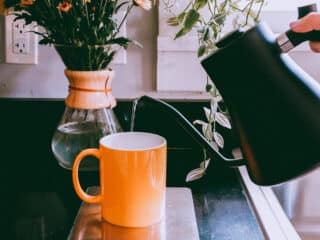 I used a food scale to make sure I used the right amount of water (8 oz) and the Fellow Stagg EKG Electric Kettle which helps us make perfect pour overs!