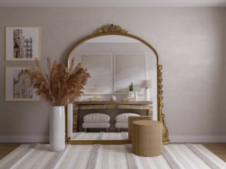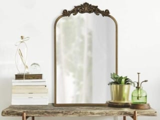 The Anthropologie Gleaming Primrose Mirror is an ornate gold arched mirror that went viral on Instagram and Pinterest. It’s known for its vintage baroque design and comes in multiple sizes and finishes. Prices start around $500 and go up to $1,600, which is why so many shoppers look for Anthropologie mirror dupes instead.