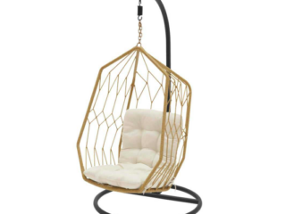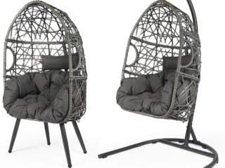 Sometimes your outdoor living spaces need something a little more unique than a classic round egg chiar. This diamond shaped chair from Home Depot features weather wicker exterior with a cushion for comfy lounging. You can sometimes find it in store but it's best to just order online (they have fast shipping!) This cheap hanging egg chair for sale comes in under $350, too!