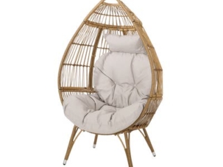Add to your cart before it’s gone! It's currently on sale! One of the best surefire ways to get a cheap egg that’s still high-end is to search for egg chair clearance offers. We’ve done some of the legwork for you and found this gorgeous designer dupe. While the chair itself is stationary, you can still feel the comfort of swaying back and forth that you would get from a hanging chair in this pretty swivel egg. You’ll love its deep basket for curling up and it even comes in two colors for maximum possibilities. The wicker egg chair is fully water-resistant (including the pillows) and has a pretty low weight making it easy to move from place to place as you desire. I personally think this would be a totally dreamy addition to your backyard garden. This cutter teardrop wicker lounge style is so fun!