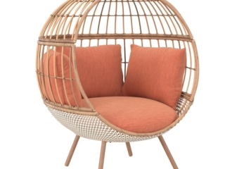 Though it is still, undoubtedly, an outdoor egg chair with legs, rather than having an oblong ovular shape, this rattan egg chair is a bubbly, perfect half-sphere with pretty off-white detailing on the bottom. Though it’s meant to be an outdoor egg chair, the Brennfield would be mega-cute in any bedroom or living room. With the price taken into consideration, its cushions might just be the most expensive-looking out of this entire list. They come in 5 stunning color selections including a coral orange and a muted greeny-blue amongst the more neutral options. And if you simply cannot wait another minute before clicking “add to cart”, you can sign up for a lowes card which allows you to finance the egg at just $100/month and provides you with a 3-year warranty.