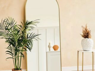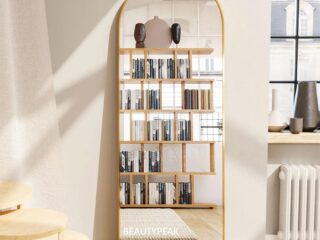 I’ve shown you a couple of options for arched full length mirrors, but this Dewfig Arched Mirror from Amazon is one that is for sure within budget. It comes in the standard black or gold color options with a stand or hooks for you to hang to any wall.