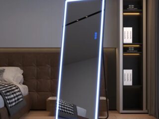 It’s long and wide enough for outfit checks and mirror photos, but the LED light is perfect for putting your makeup on. It comes in two different colored trims and can be wall mounted or stood up with its included stand.