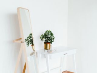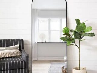 Like most mirrors, it can be leaned against any wall. Its neutral finish makes it easy to blend with your other furniture, but also compliment any outfit you decide to wear. The best part is that it’s on sale and below one hundred dollars!