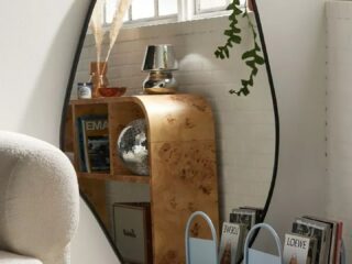 The thin metal border currently comes in a black finish, and the design on the top half is super fun! Be sure to call ahead to stores near your area to check if it’s in stock, but you can also order online. Anyone with a two hundred dollar budget will be lucky to score this mirror and have it leaning in their home.