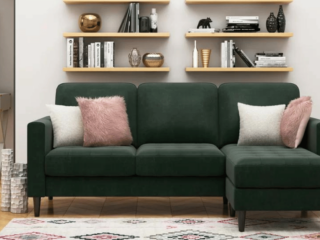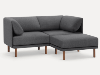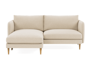 If you live in a REALLY small space, this 72" loveseat sectional is amazing. Since it's an interior define sofa, everything is custom. The length, the legs, the cushions, the fabric colors (over 20!) and even the seat depth. They'll last forever and come with white glove delivery so you don't have to do a thing. It's one of the best small l-shaped sectional sofas for super small apartments like mine!