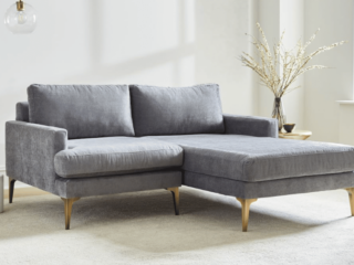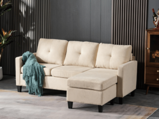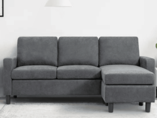 This super affordable apartment size sectional sofa with chaise is under $400 and comes in a few color options. The chaise is reversible so you can make this an L shape on the left or the right, depending on your living room. And, it comes with removable all-foam seat cushions and a collapsible backrest!