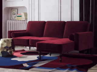 This Reversible Sectional Futon is the perfect combination of glam-chic style and functionality. I mean just look at that color!! Its upholstered in soft velvet and black scroll work legs bring a touch of vintage style to this modern sectional futon. You can choose between a few fabric colors if red isn't your thing. It has a sturdy wood frame and interchangeable chaise to make this a left or right shape.