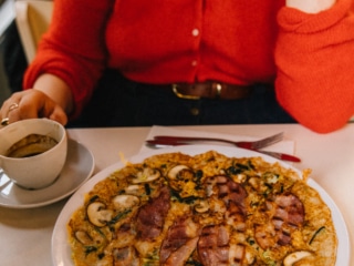 Look, Dutch pancakes are a THING and they are incredibly tasty. I found Dutch pancakes (aka Hollandse Pannenkoeken) to be a lot like a savory crepe. They’re large (like, medium size pizza large) but thin. My husband and I shared a pancake and weren’t able to finish it all, so don’t feel like everyone in your group needs to order their own.