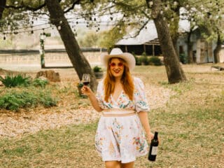 I love a flirty and fun dress, especially with the Texas heat. I wore a white Deep V Floral Mini Dress (that really looks more like a romper) while wine tasting in Texas. Did you know that there is a huge wine tasting region just an hour away from Austin?