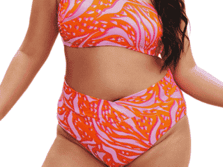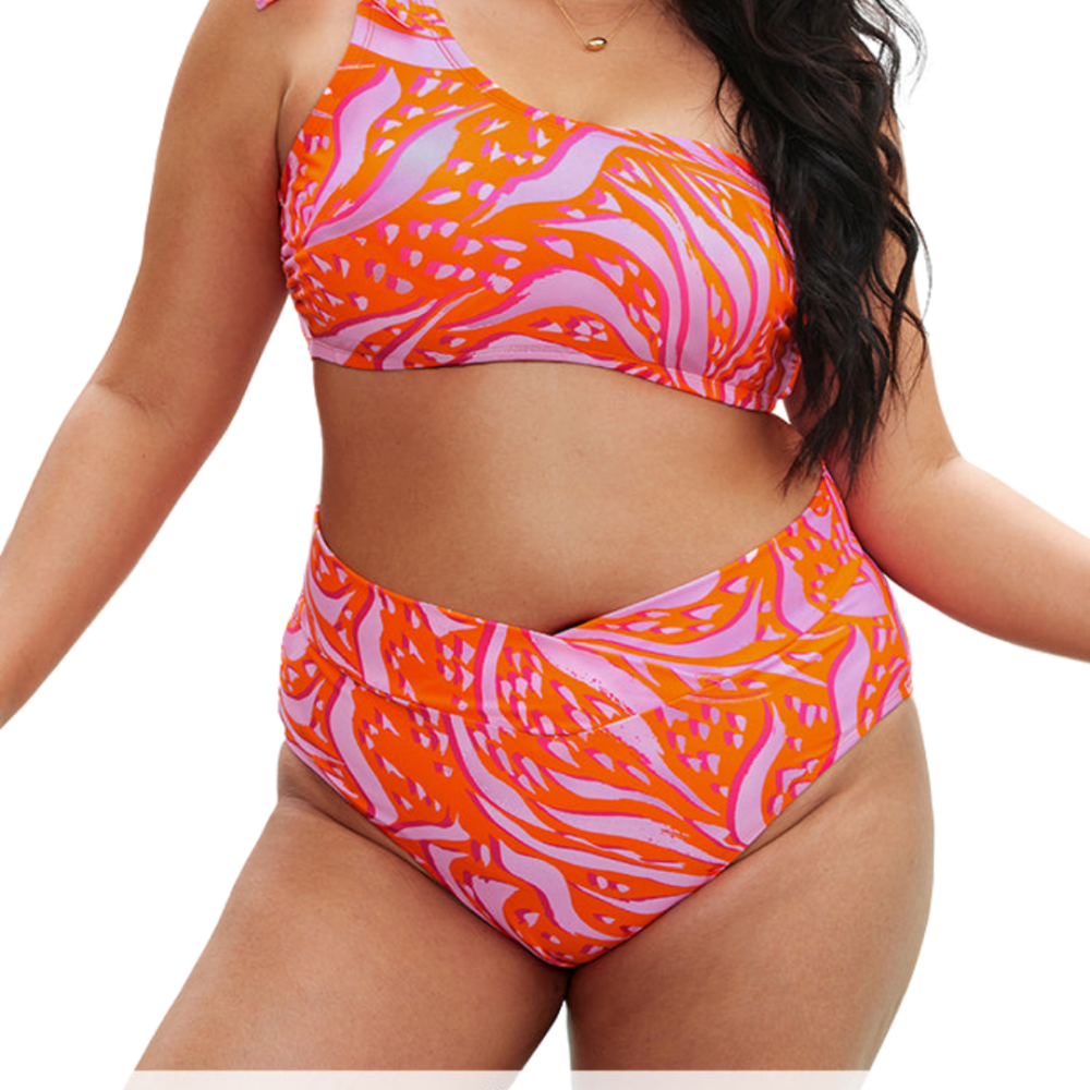 I have a LOT of favorite swimsuits from Cupshe, but this is one that I know this high-waisted bikini is one I’ll be wearing a lot this summer. The color palette and design spark so much joy, it fits my curves perfectly and the bikini top looks great with denim shorts or white coverups.