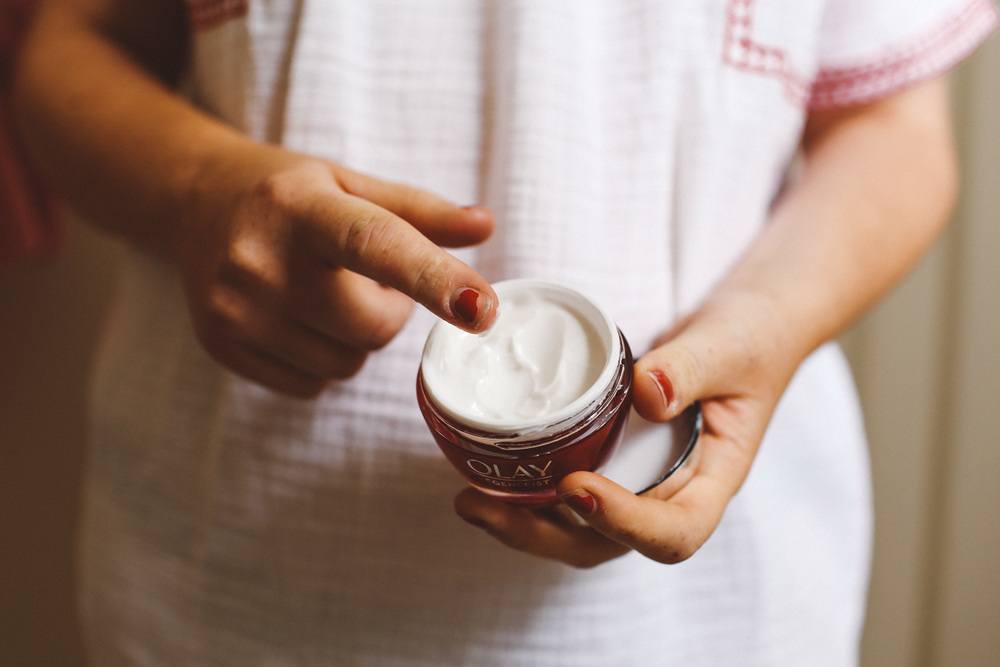 Before I share my before & after photos and final thoughts, let’s chat the basics about this moisturizer cream. It’s part of the Olay Rengerist family product line. There’s also oils, cleansers serums and sunscreen in this line, which is all about anti-aging, reduction of fine lines and keeping the skin looking youthful.