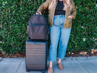 According to Béis, the Béis Weekender is a carry-on. I personally think you might be able to swing the Béis Mini Weekender as a personal item depending on the airline. I’ve definitely squeezed my Béis backpack under plenty of seats.
