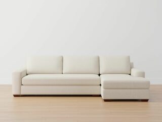 There’s roomy storage under the seat in the chaise lounge chair section and it’s easy to arrange the modules without tools. The seat and cushion covers are also machine washable which makes regular cleaning a breeze. If the mod sofa with chaise isn’t your vibe, there’s loveseat and sectional options in the same style and fabric.