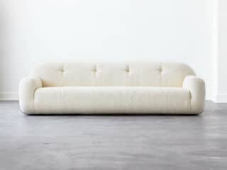 There’s 9 boucle colorways to choose from that range from versatile neutrals to jewel tones (aka perfect statement couch dreams). Since it starts at a 108” width, this would be a better fit for open floor concepts and larger living rooms.