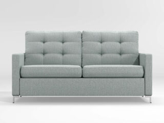 The Bowen features a premium 80” queen mattress with a gel topper. (No back problems here!) In its couch form, you get a sweet 2-seater with classy tufting on the back cushions and modern stainless steel legs.