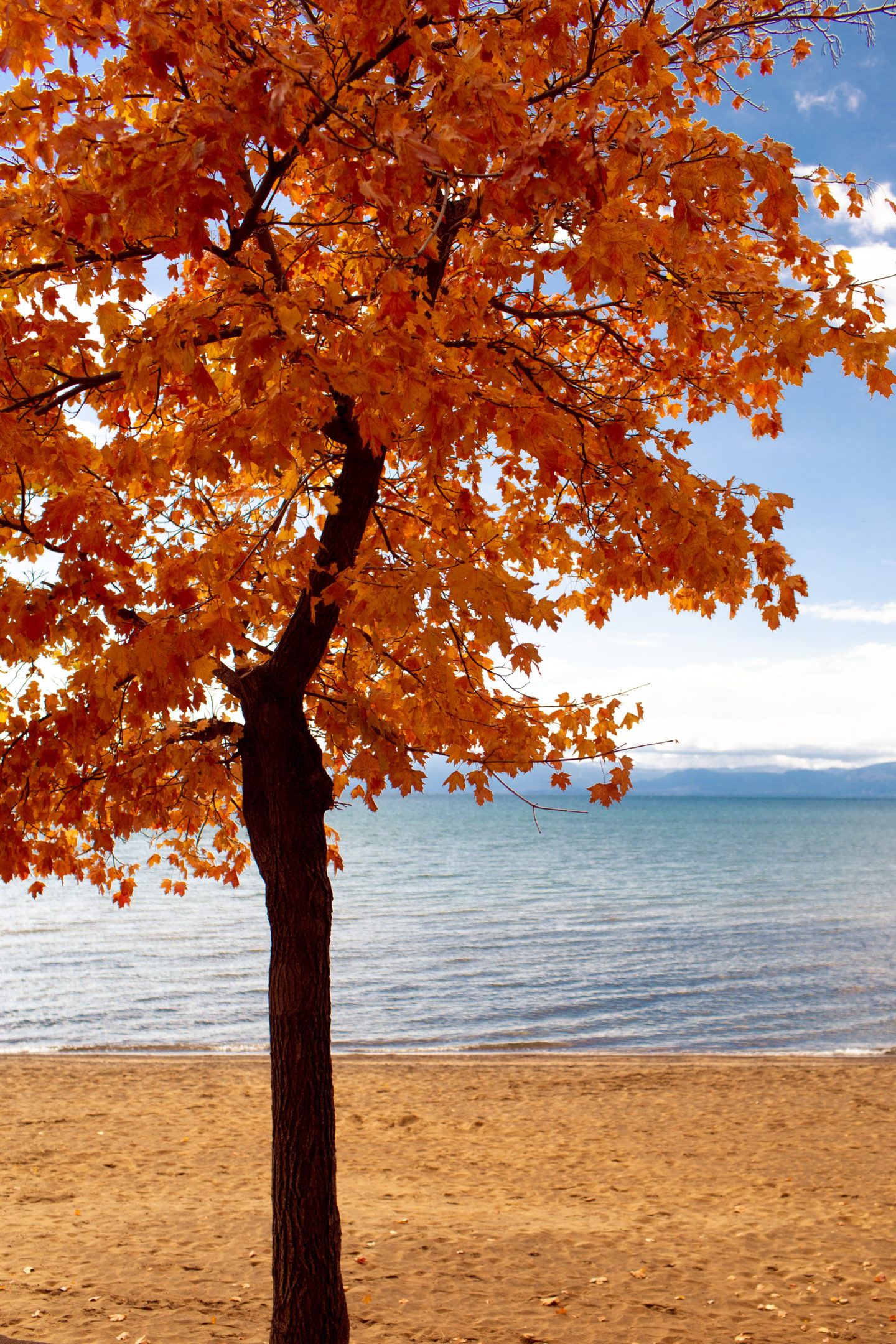 Of course, you can’t talk about fall colors in California without including Lake Tahoe! While you won’t find huge patches of colorful fall leaves, you’ll get plenty of lone trees along the lake that are bright orange, yellow or red. You can find the colors on the North and Southside, though when we visited, I think they were stronger on the North side.