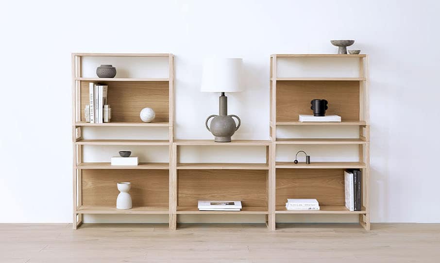Inspired by Japanese woodworking, the NUMI Shelf is designed to last a lifetime featuring a sustainably crated, modular, hardwood frame.