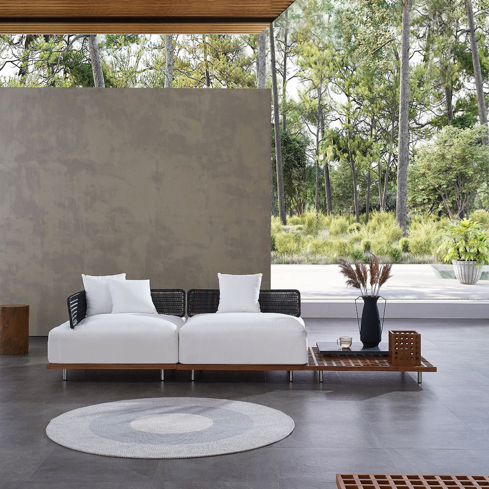 Made from teak, polyester, and rattan, the Oni lounger sets are the perfect place to relax in your outdoor space!