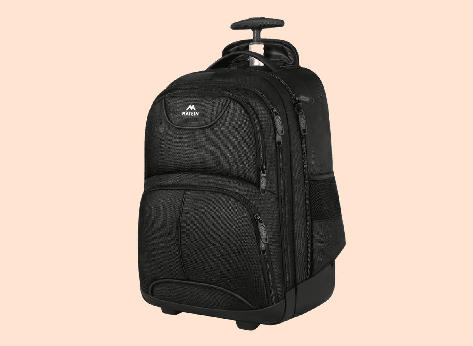 If you’re looking for a budget travel backpack with wheels, and don’t mind packing a little lighter, check out the Matein Rolling Backpack.