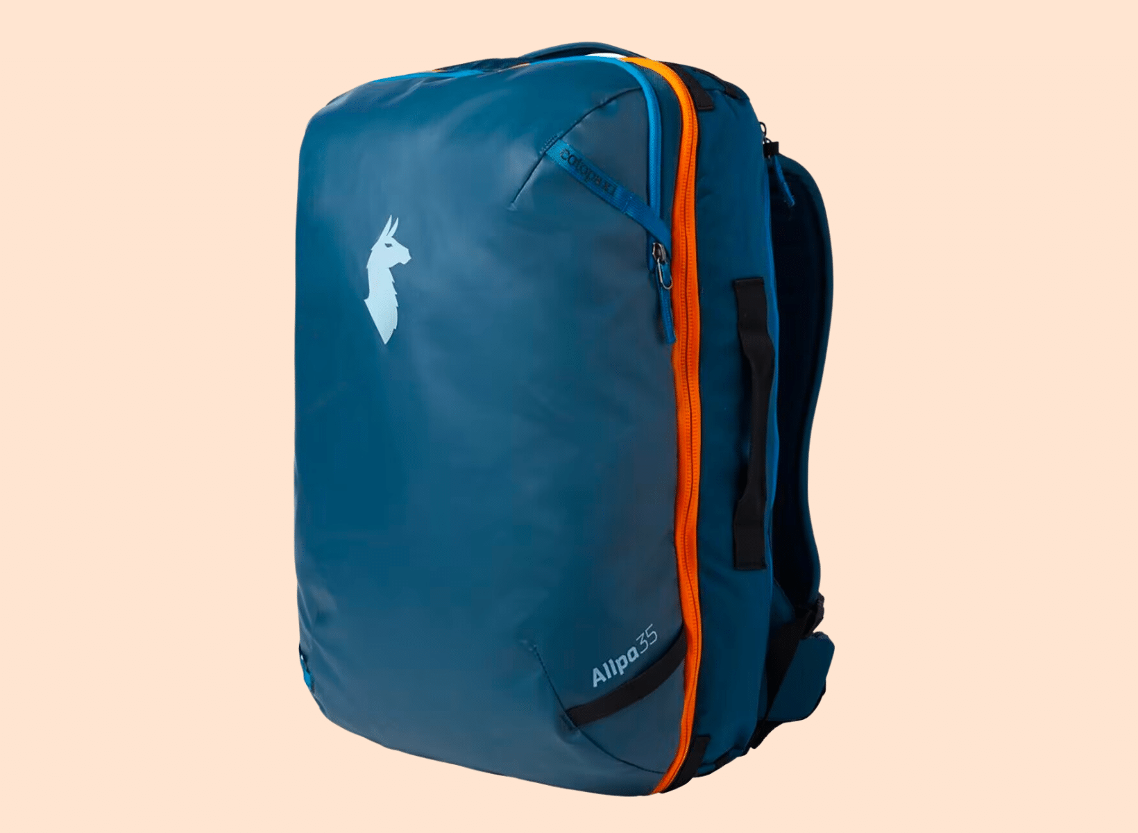 The Cotopaxi backpack Allpa model is an elite travel backpack that’s always very highly rated from travelers. It’s 35L, which is pretty large and can fit up to a week’s worth of clothing.